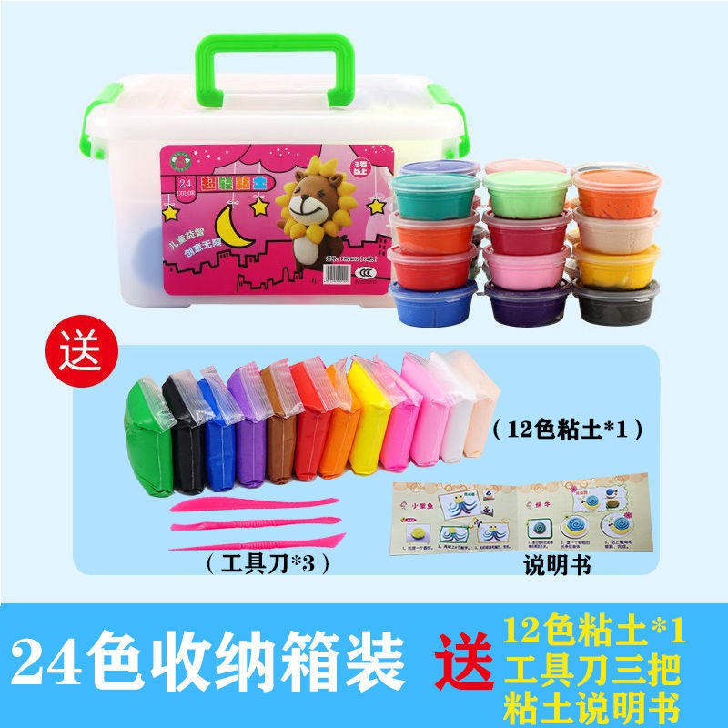 現貨 超輕粘土24色盒裝彩泥套裝幼兒園太空泥36超級兒童連親無毒黏土清 露天拍賣